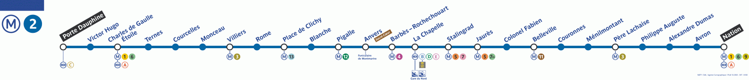 En correspondance avec les lignes RER par un couloir qui mène dans la salle d'échanges de la Gare du Nord banlieue ou vous trouverez les lignes B, D et E et les lignes 4 et 5 du métro c'est long mais pratique