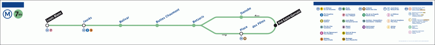 7 Terminus en quai à quai Ligne 7-> Ligne 7bis vers le Nord (départ Ligne 7Bis) et retour vers le sud (Arrivée ligne 7Bis) avec 2 stations à quai central et tiroir inversé.- un cas unique dans le métro de Paris.